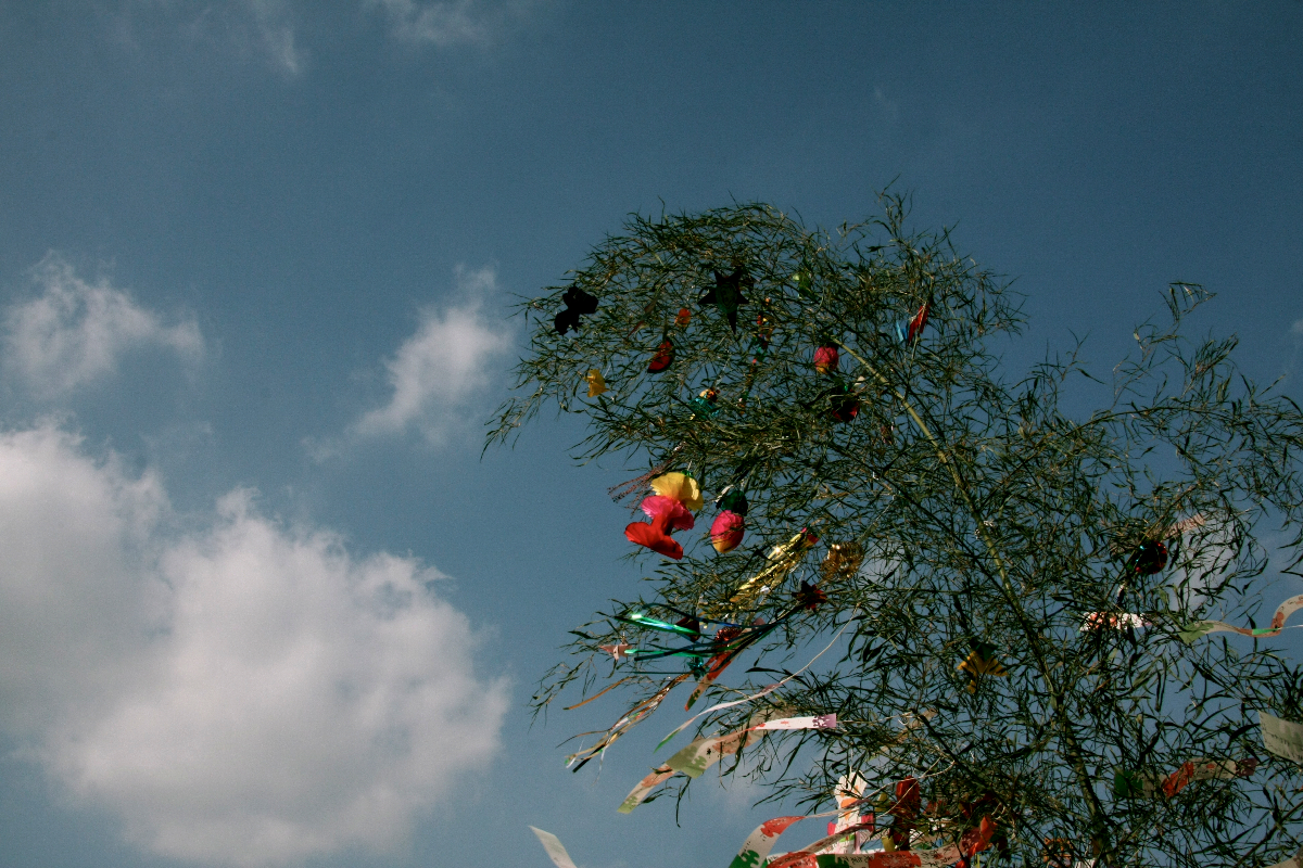 二日遅れの七夕 青色の短冊を笹の枝に結びました 上の枝には赤色の短冊で 「好きな人が幸せでありますように」 どんな人が書いたのでしょう 声にして読みながら 七夕に願いごとをするのは おとなになってはじめてのことだと 気づきました