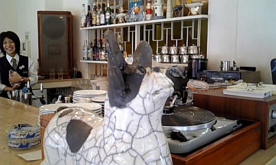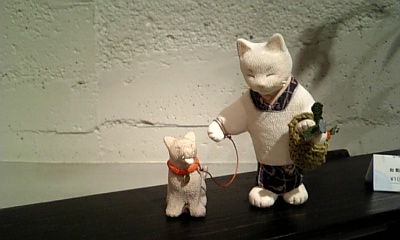 本日の第一目的は、みよちゃんの個展。 古布を着せて作る猫は品が良くて本当にきれい。 みよちゃんの中高の同級生や 当時の数学の先生も来られてとてもにぎやか。 みよちゃんとその仲間とはもう十年来の付き合いなので ここでも話が弾みます。 食べて、喋って、自由な午後を堪能。